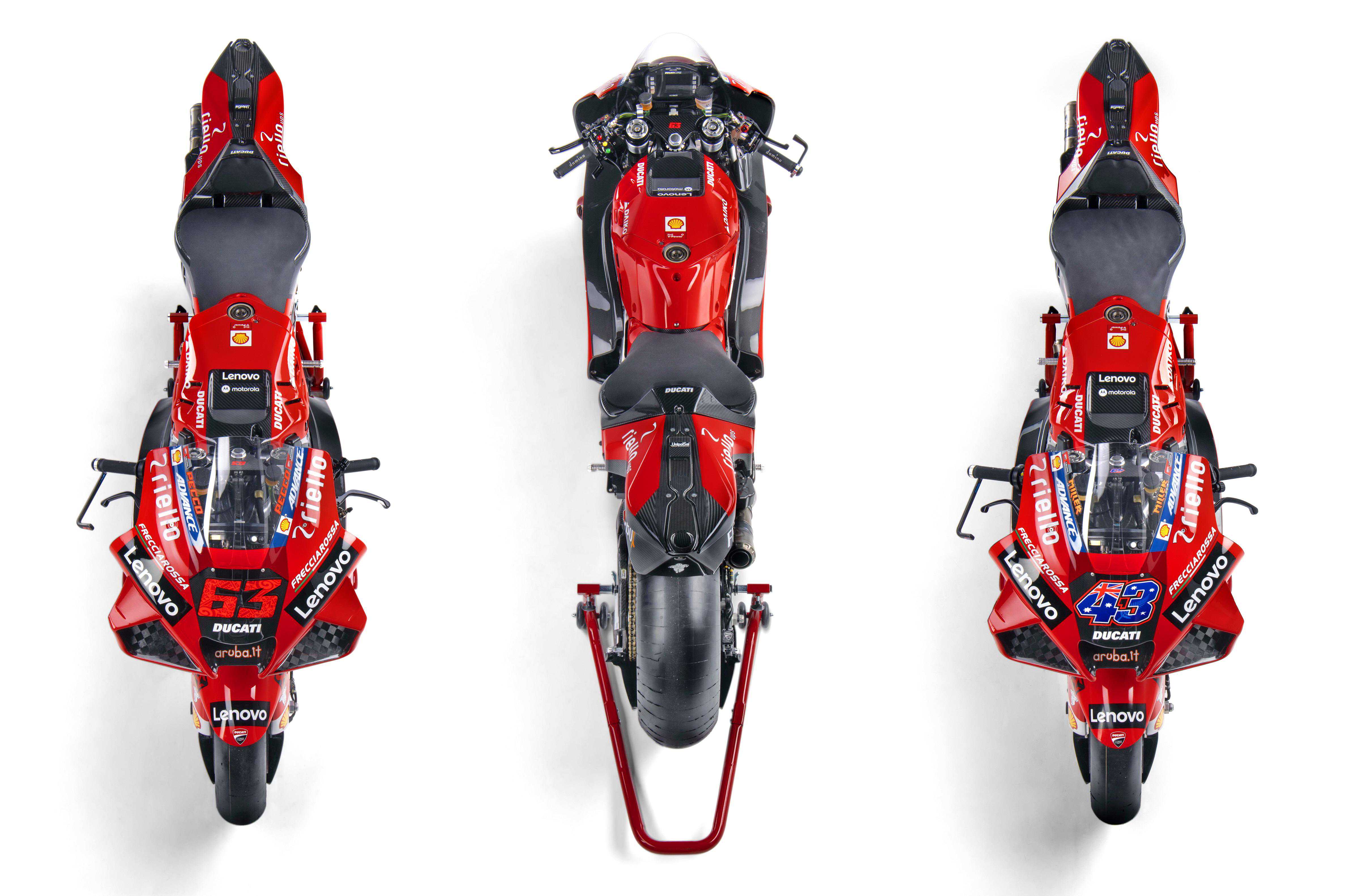 杜卡迪在昨天(二月9日)发布了MotoGP2021赛季的工厂车队和DesmosediciGP21工厂赛车的新涂装。中国联想则成为了车队在新赛季里的主赞助商,车队名为杜卡迪联想车队(DucatiLenovoteam)。