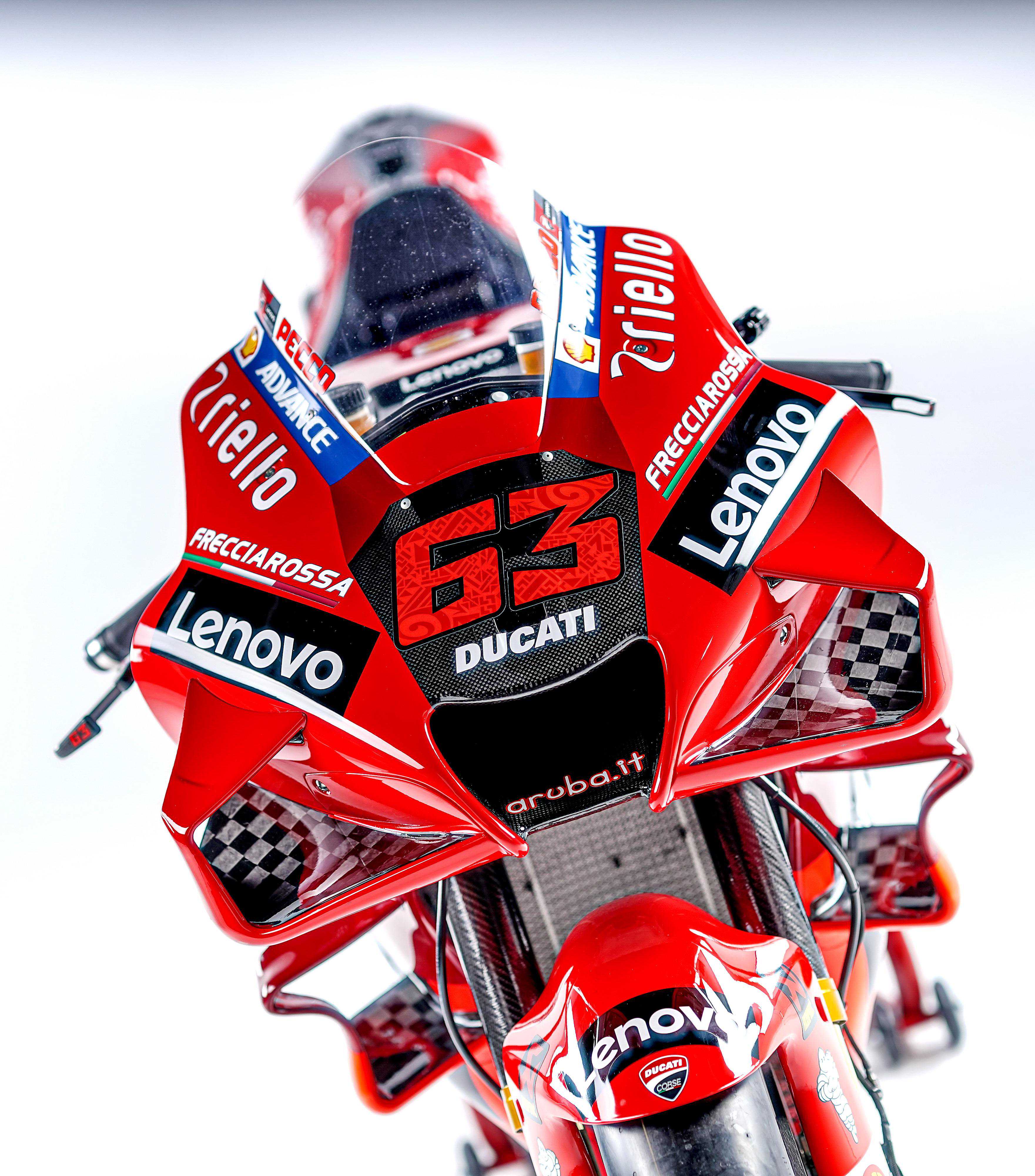 MotoGP新的2021赛季,杜卡迪工厂车队的车手组合,是去年已经发布的、全面年轻化的澳大利亚车手米勒(JackMiller,43号车)和意大利车手巴纳亚(PeccoBagnaia,63号车)。