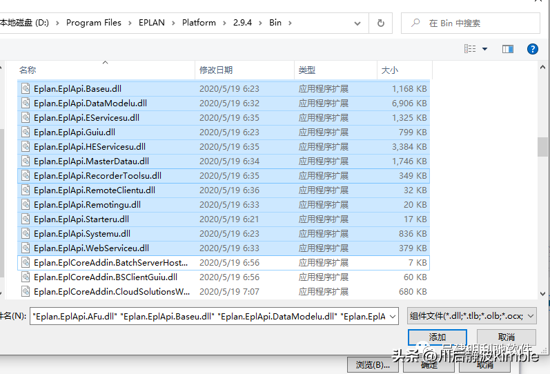 然后引用下开发所必要的外部程序,位置在EPLAN启动目录,下图中选中区域为必需的dll,其它可按需引入。