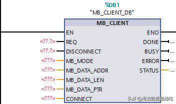 S7-1200客户端侧需要调用MB_CLIENT指令块,该指令块主要完成客户机和服务器的TCP连接、发送命令消息、接收响应以及控制服务器断开的工作任务。