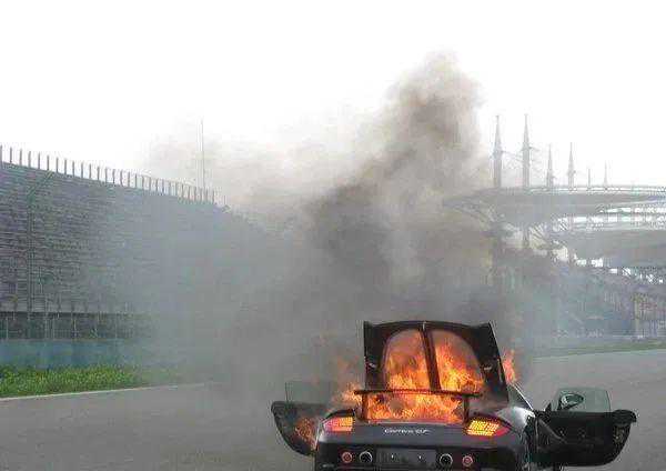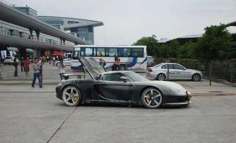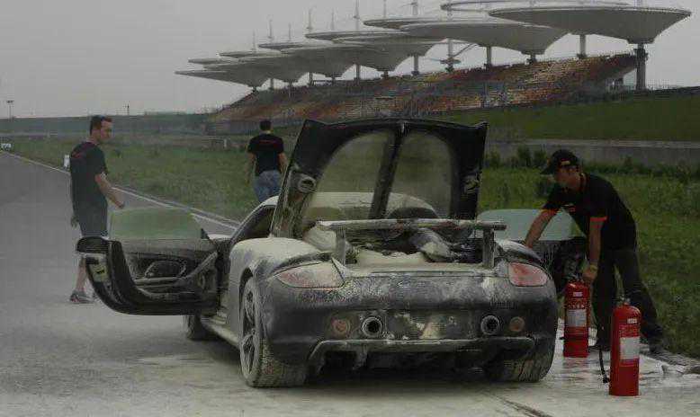 2016年,上海一辆黑色CarreraGT在上赛起火燃烧,发动机损毁严重。