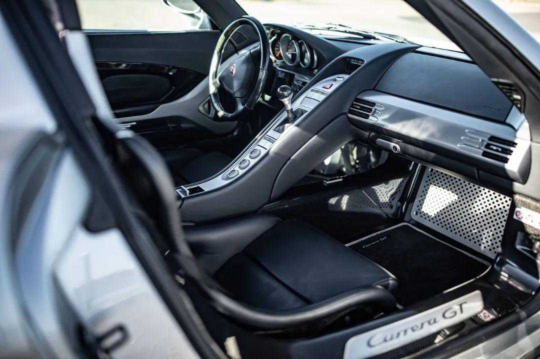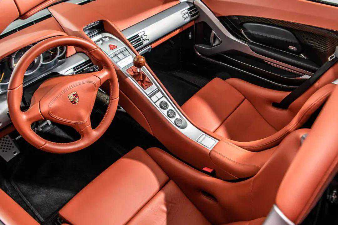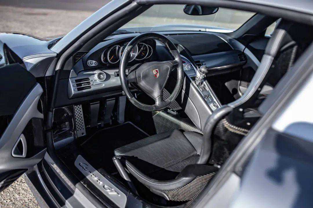 值得注意的是,这辆车还选配了CarreraGTCustomTailoring套件,该套件由碳纤维装饰方向盘和换挡杆组成。此外,你还可以通过座椅靠背后面看见大量的碳纤维。CarreraGT标志性的Jabroc(又称山毛榉)木换挡杆并未出现,还是挺奇怪的。
