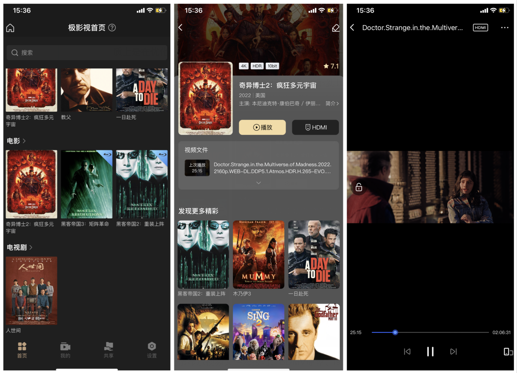 所以如果在我们的NAS里已经下载好了电影后通过极空间的极影视来观看还是非常方便的,这也是为什么我说这是极空间最适合没有网络基础的小白发烧友做影音中心的原因,不用折腾就可以轻松观影。