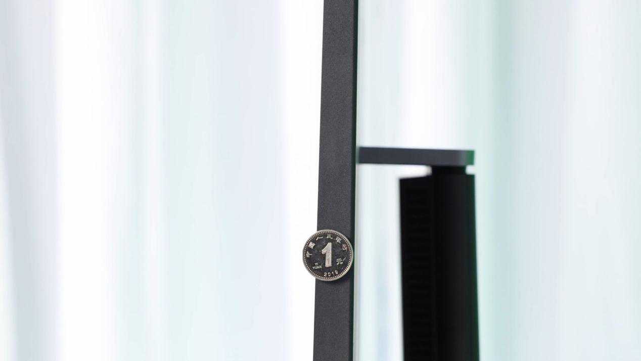 目光转移到侧面,可以看到,屏幕的厚度也控制的很好,只有13.8mm。虽说一体机不像笔记本,有便携性方面的需求,不过作为一款固定摆放的产品,一体机在美观度上还是比较重要的,薄且简洁的机身,无论是摆放在自己的办公桌上,还是放在服务窗口面对外部人员,都是非常能够提升观感的。