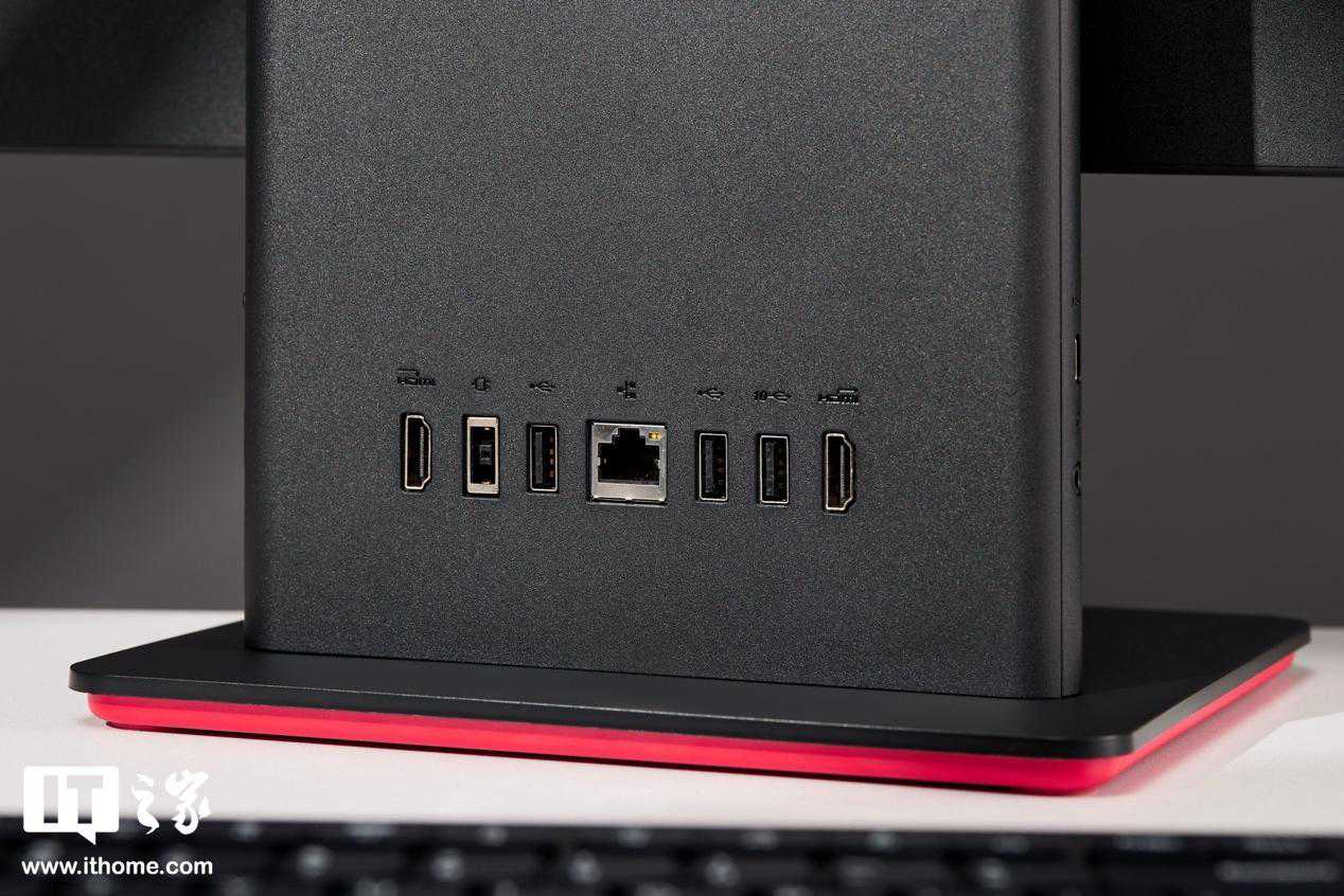 另外,支架区域还搭配了一对哈曼卡顿的音箱,支持杜比音效。平整的底座部分也可以选配增加无线充电功能,为手机充电,让桌面再减少一根线。