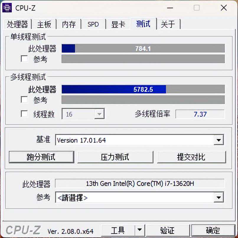 在CPU-Z测试中,单核得分784.1分,多核得分5782.5分,这个性能办公使用是足够的。