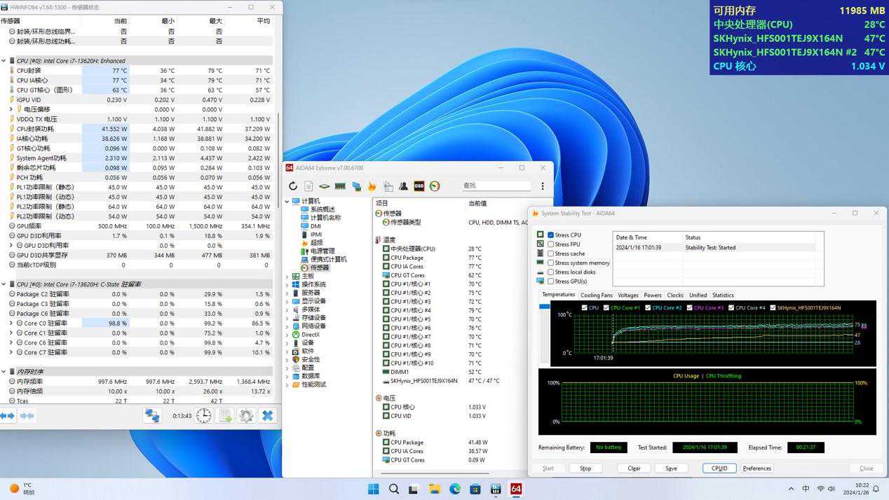 在系统的稳定性方面,IT之家对启天A970进行了20分钟CPU单烤,最终CPU核心温度为77℃,功耗为41.5W,主频稳定在3.99GHz,性能释放策略偏保守,不过考虑到其办公属性对噪音的压制,这样的功耗策略也能理解。
