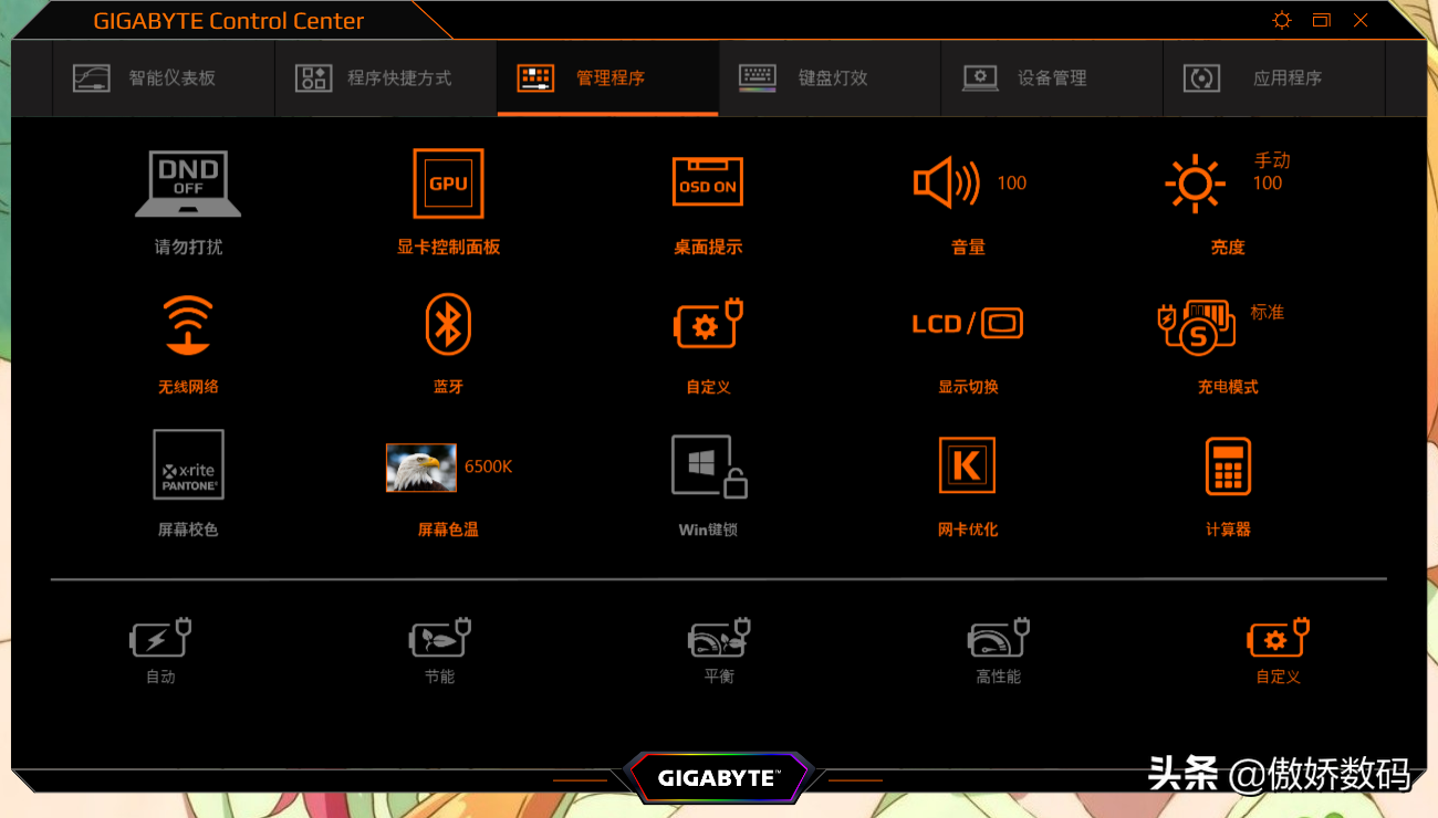 技嘉这台本本比较好的一点是没有预装什么乱七八糟的软件,比较主要的也就一个控制中心软件了