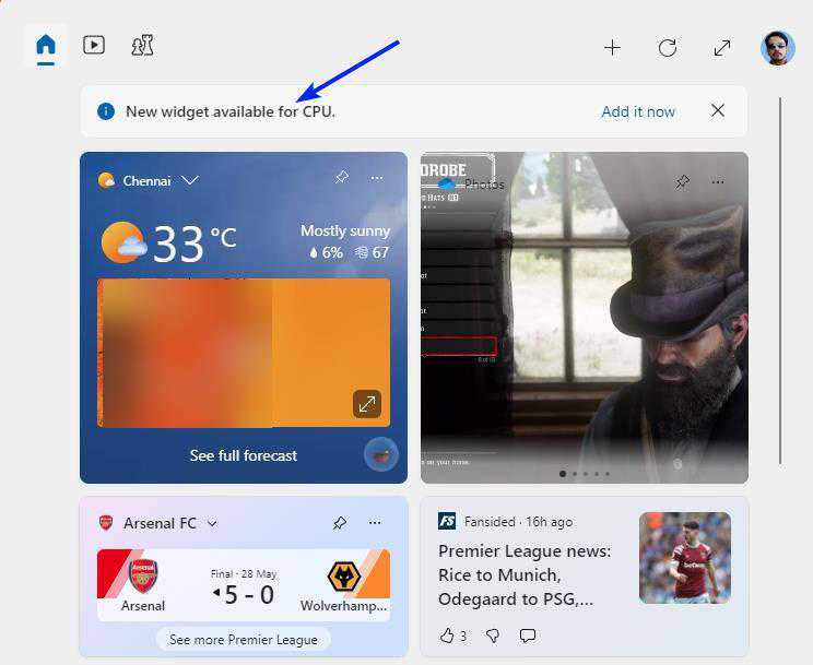 添加之后,现在您就可以通过Win+W或单击任务栏上的小部件按钮来监控系统的性能。