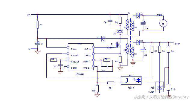 c.代换PC2,PC3无效,故障可能为开关管低效,或者UC3844内部输出电路低效,代换优质开关管或者UC3844芯片。