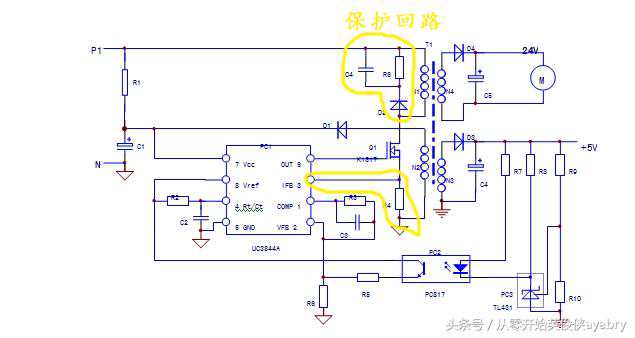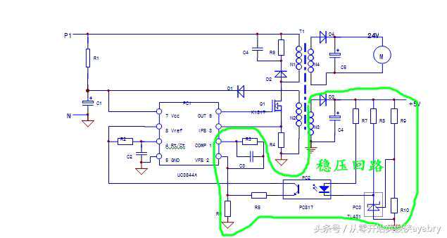 当然,PC1芯片和1,2脚外围元件R3,C3也是稳压回路的一部分。