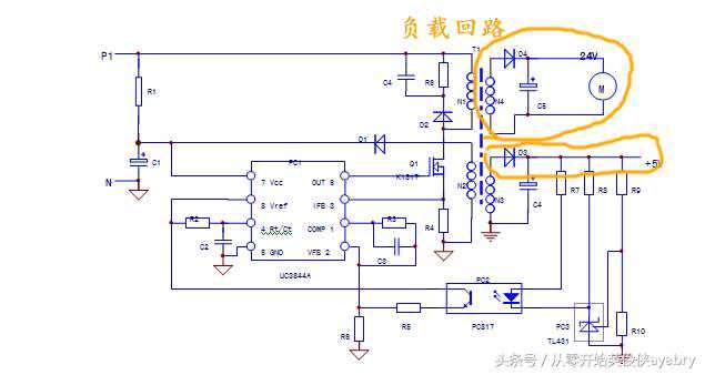4)负载回路:N3,N4二次绕组及后续电路,均为负载回路,负载回路的异常,会牵涉到保护回路和稳压回路,使两个回路做出相应的保护和调整动作。