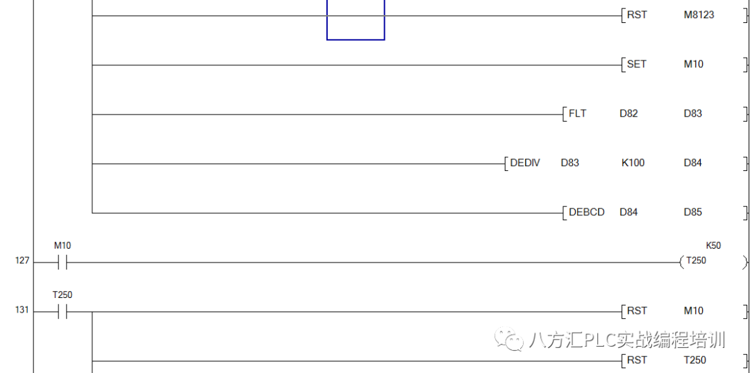 当M8123置位时,表明接收已经完成,此时需要将接收到的数据从接受缓冲区转移到用户指定的数据区,然后手工复位M8123。复位M8123后,则PLC再次进入接收等待状态。