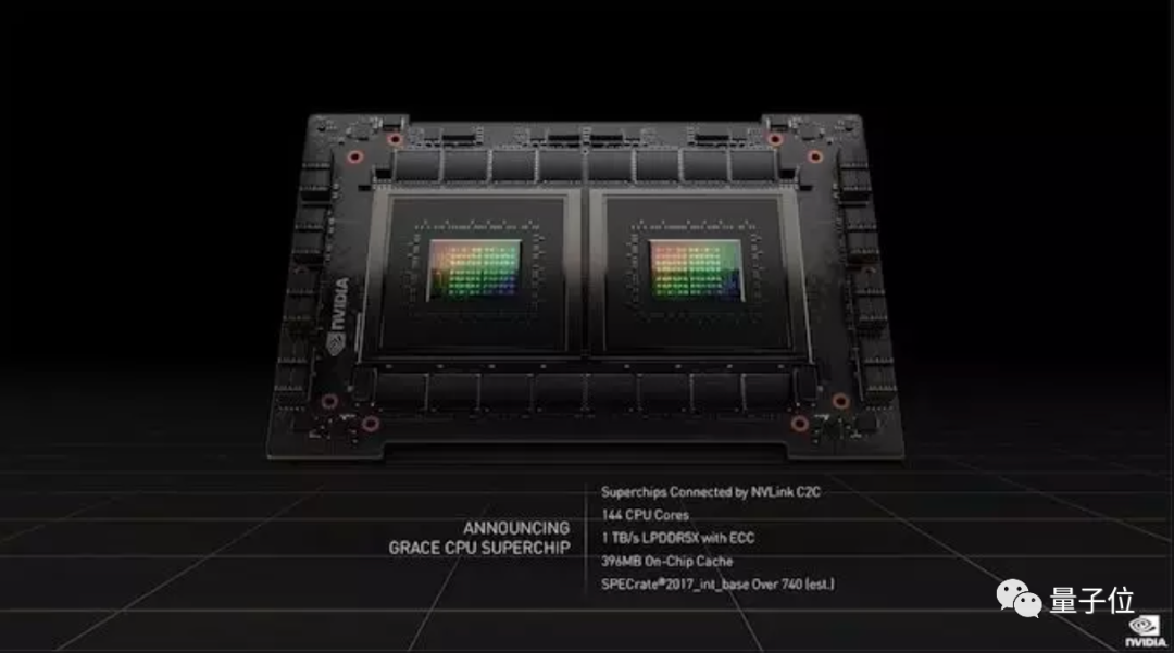 一个是GraceCPU超级芯片,由两个GraceCPU组成,通过NVIDIANVLink-C2C技术互连,包括144个Arm核心,并有着高达1TB/s的内存带宽——带宽提升2倍的同时,能耗“只要”500w。