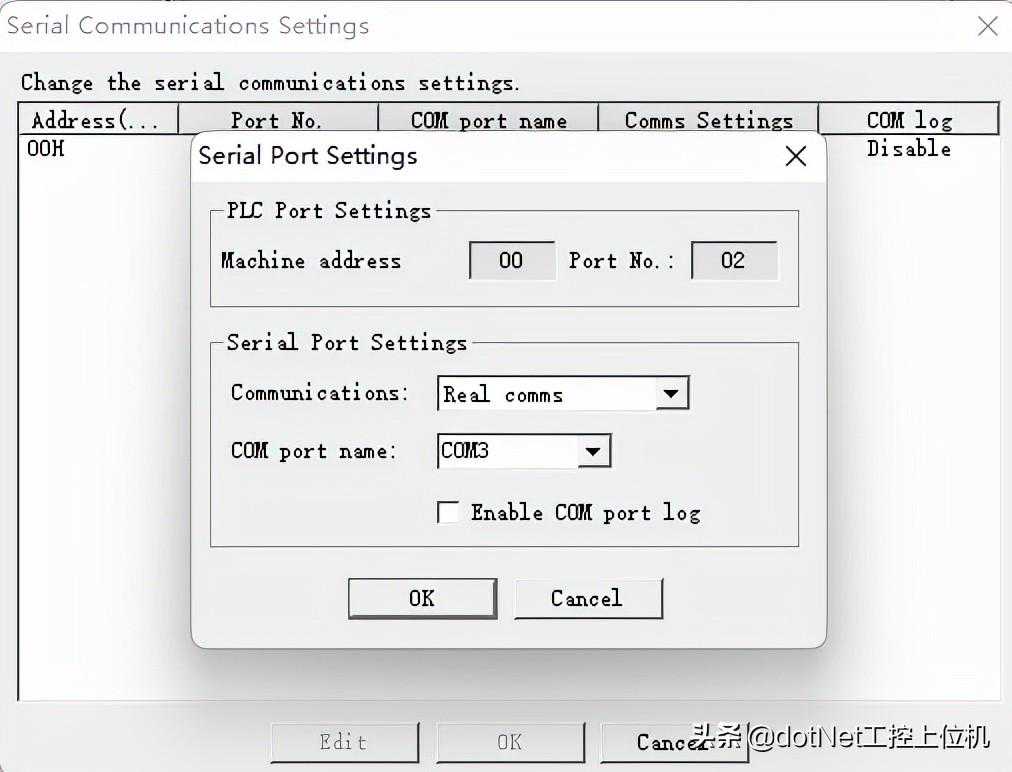 9、PLC设置向导之串口通信设置,双击之后,选择真实串口RealComms,这里需要使用虚拟串口助手VSPD,虚拟出一对串口,我虚拟的一对串口是COM3和COM4,所以这里我选择COM3。