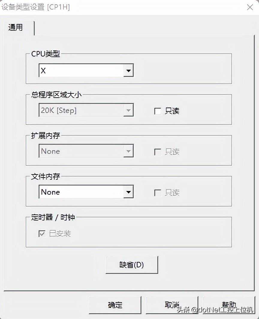 6、这里选择一个CPU类型,我这边选一个常用的CP1H系列PLC。
