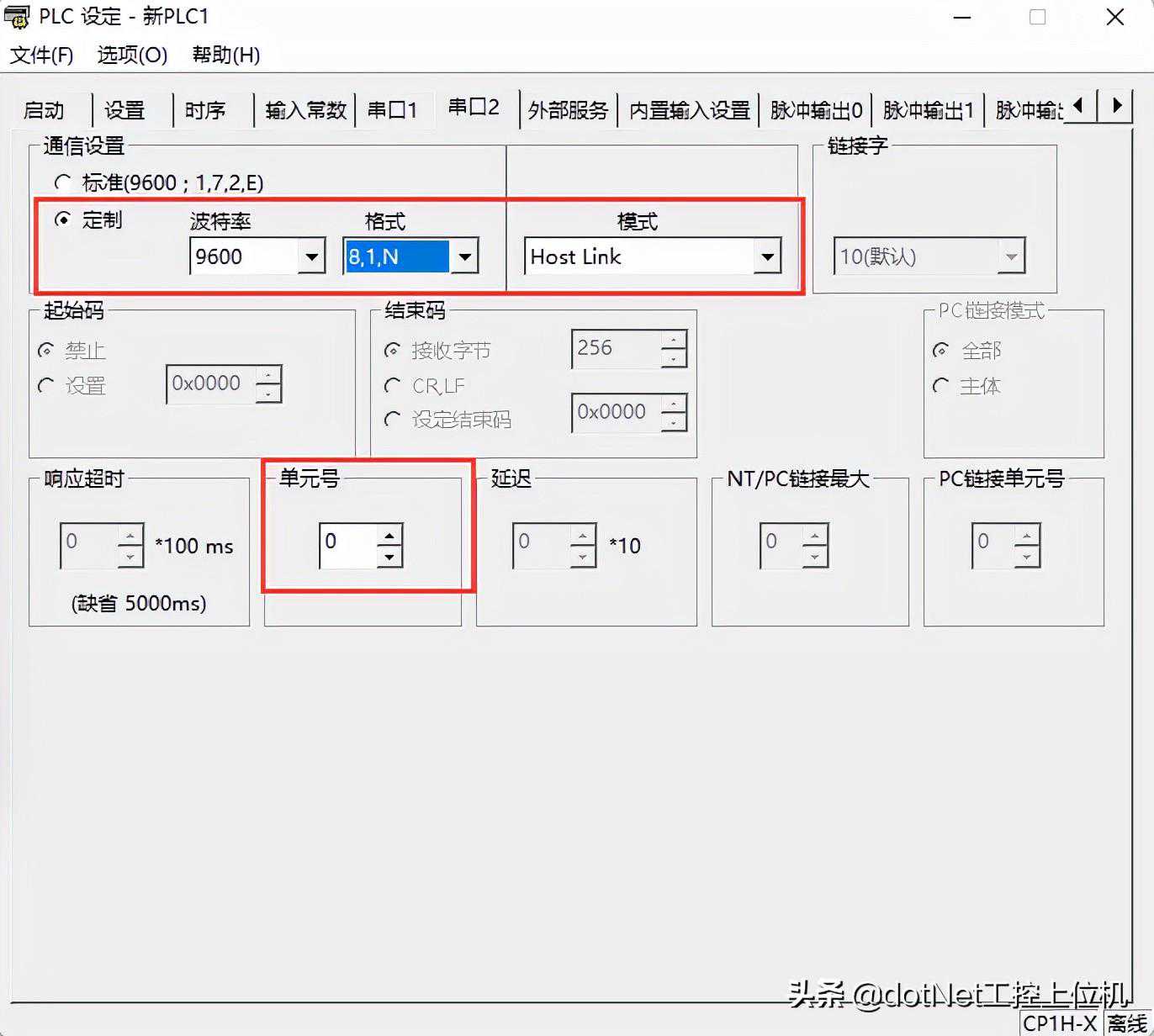 4、接下来配置一下,主要设置两个地方,一个是通信参数,这里设置为9600N81,另一个是单元号,默认是0,可以不用改,后面会用到。