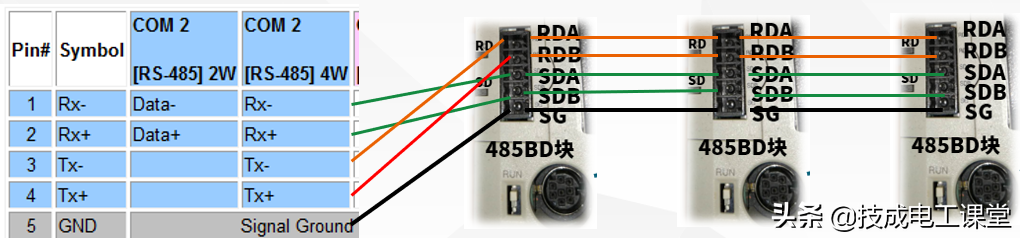 触摸屏和PLC的BD板之间的连接如下(COM2)