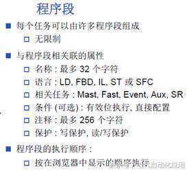 2)快速任务(FAST)用于执行时间较短的、周期性的处理任务。它由代码段和子程序组成。代码段和子程序都可用LD、FBD、IL、ST来编写。SFC不适用于快速任务。快速任务是周期性(1~255ms)执行的,它的优先级别比主任务高,快速任务的程序执行时间必须尽可能的短,以避免低优先级别的任务发生溢出。