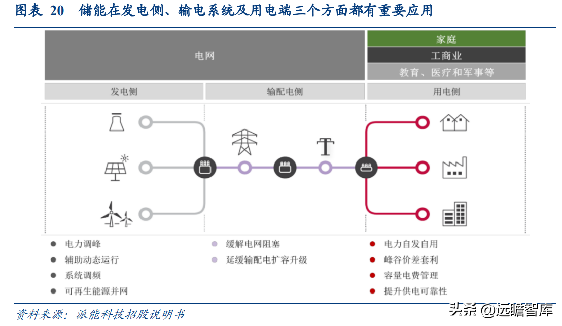 从整个电力系统的角度看,储能的应用场景可分为发电侧储能、输配电侧储能和用电侧储能三大场景。