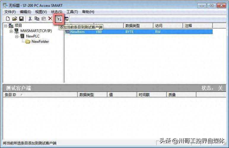 注意:客户端测试只能测试从PLC读取变量数值,不能测试向PLC写变量值
