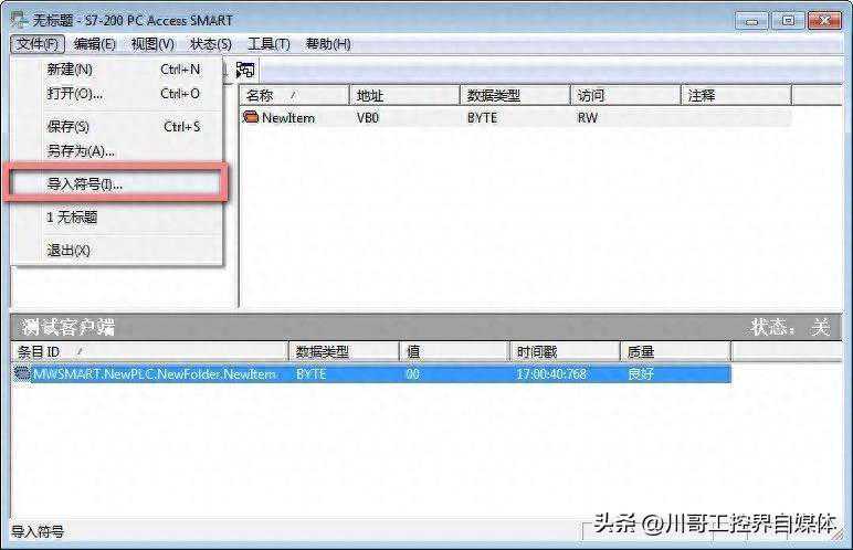 首先需要使用者的S7-200SMART程序中变量有符号名,选择S7-200PCAccessSMART软件---文件---导入符号,就可以找到S7-200SMART程序,把S7-200SMARTPLC中有符号名的变量都导入到PCAccessSMART中。