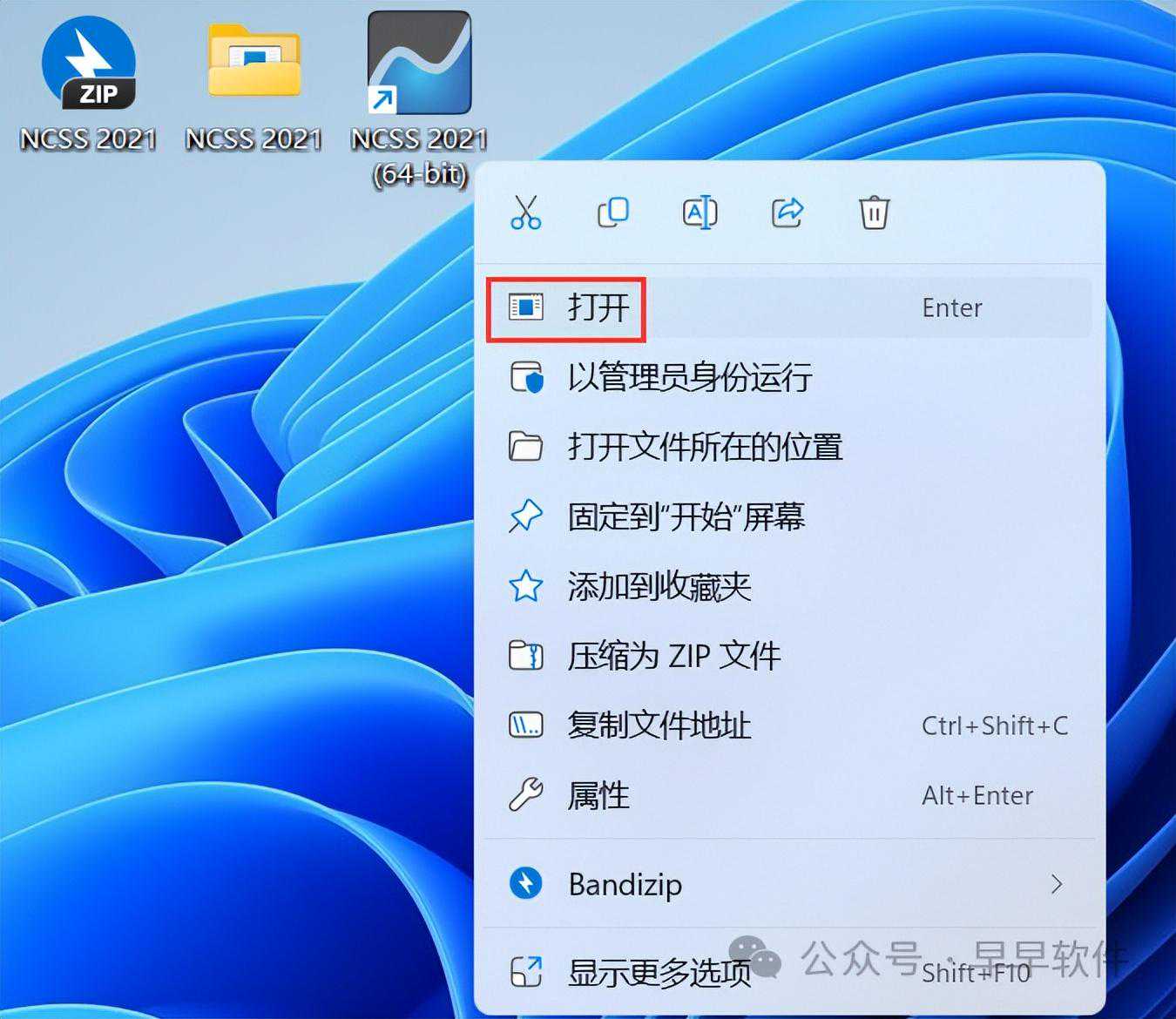 1、下载NCSS2021软件安装包到电脑上,右键选择【解压到NCSS2021\】