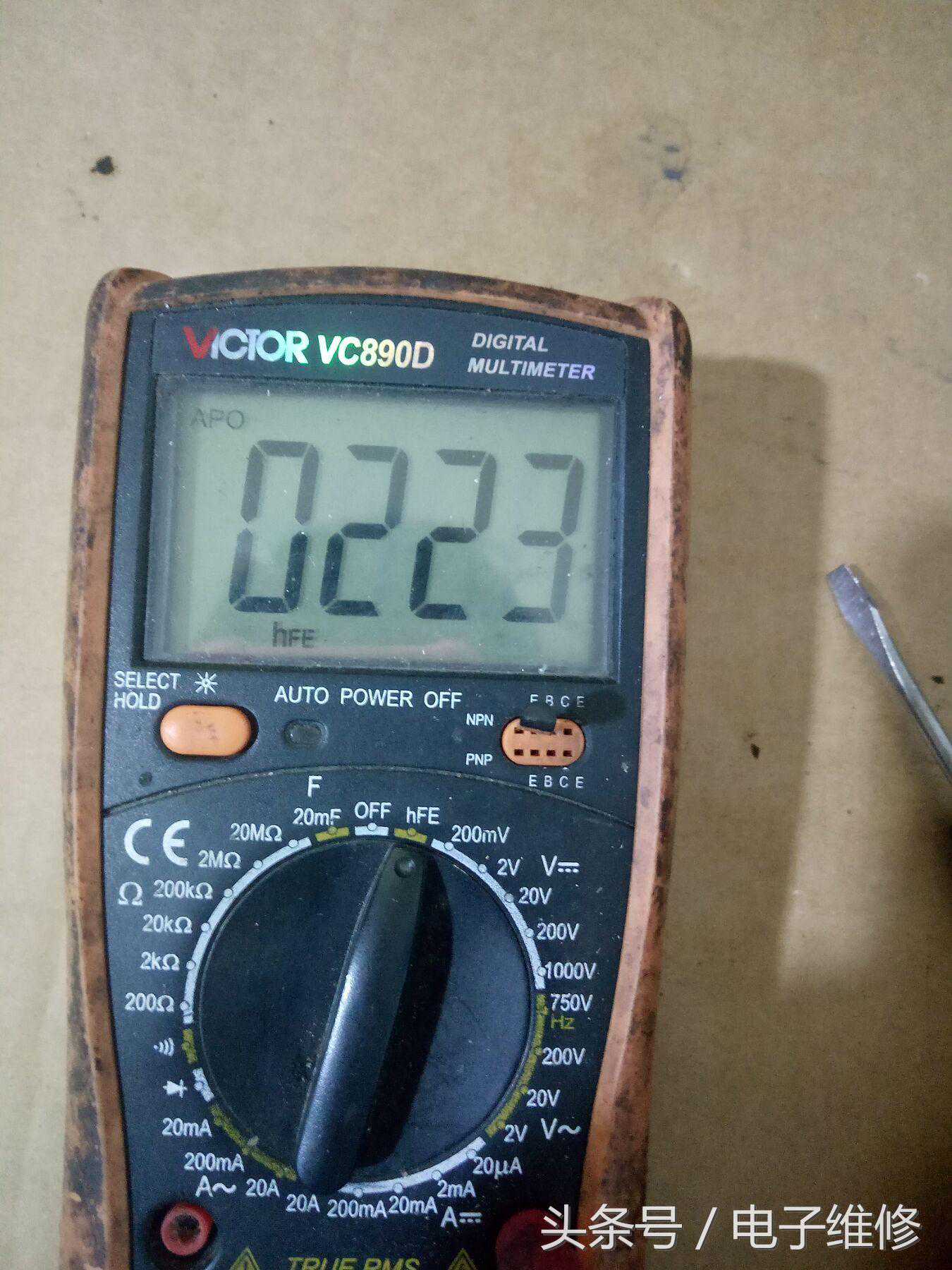 两只同型号的管子,hFE的值是不一样的,这也充分验证了上面所述,hFE的值具有分散性。