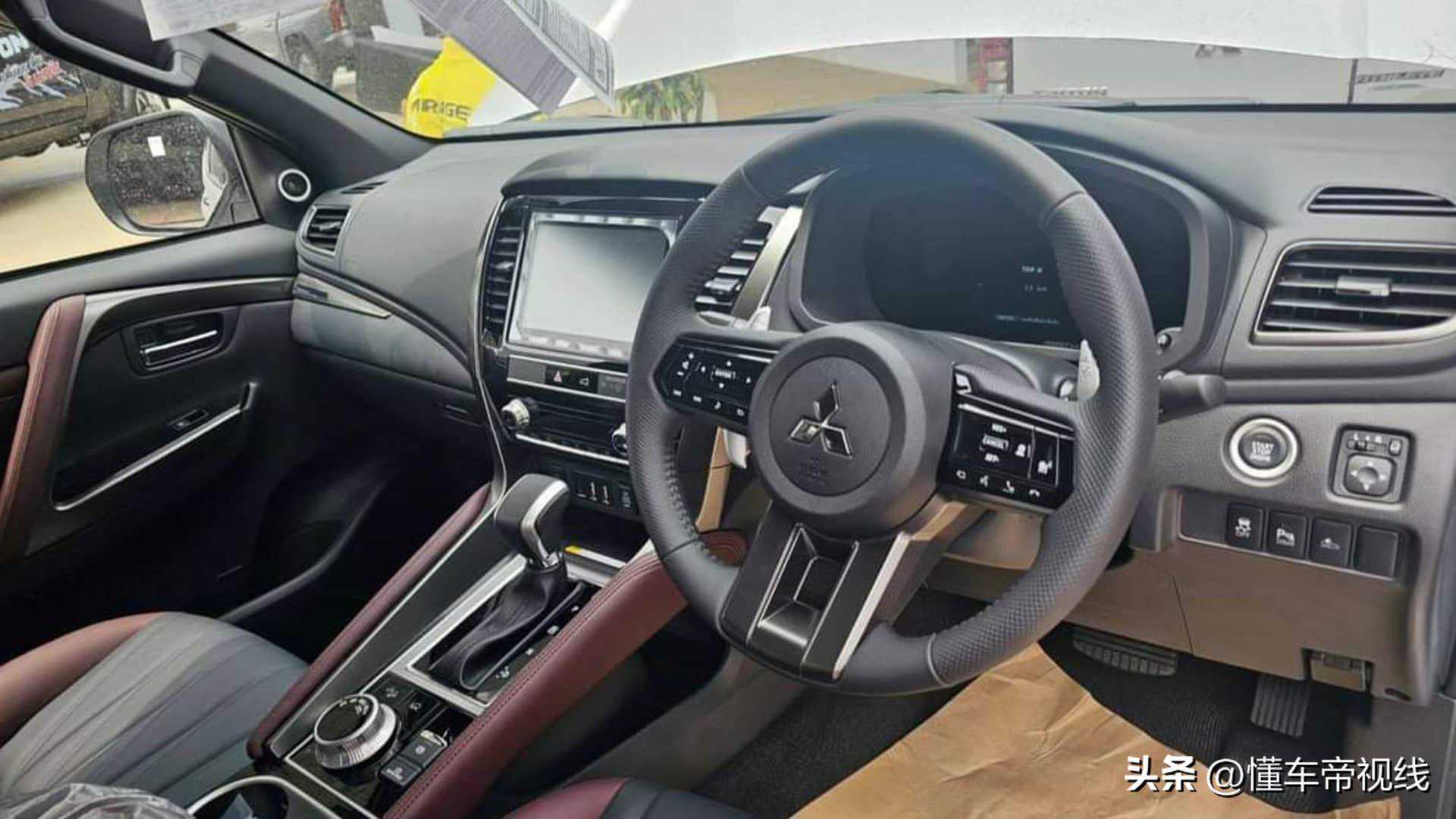 对比来看,新款三菱帕杰罗·劲畅前格栅内部细节有所修改,取消横向条幅,增加全新多边形元素和镀铬饰条。同时,新款三菱帕杰罗·劲畅内饰换装最新三菱家族化造型多功能方向盘,提供换挡拨片功能,其他内饰功能布局和配置水平与海外在售款型基本一致。