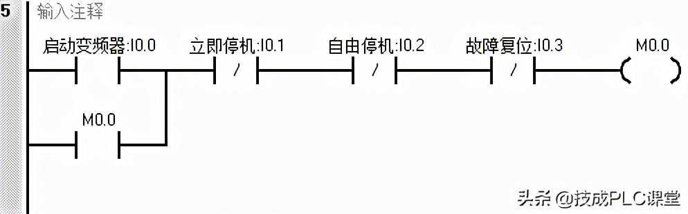 第五步:(按下启动按钮,变频器启动并保持,按下停止或复位变频器停止)