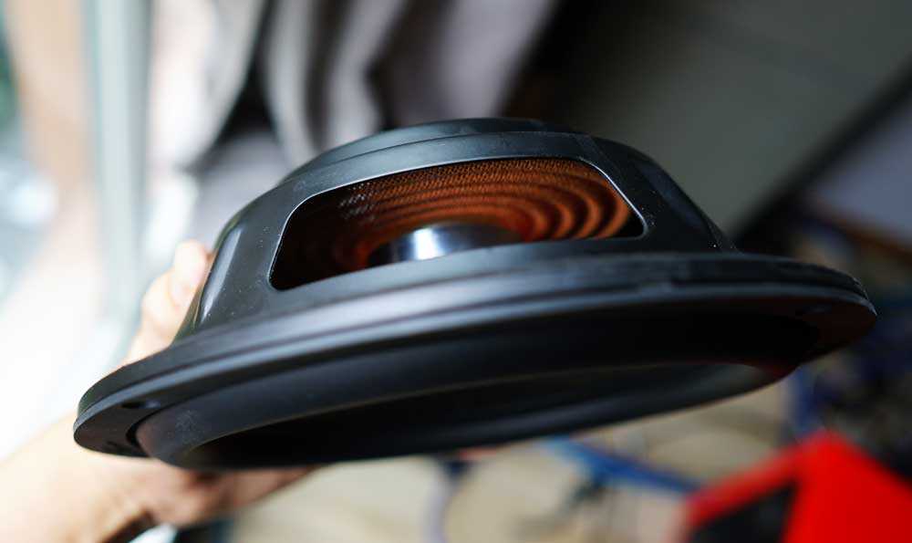但SUB24的无源辐射盆和几位老大哥都不一样,它没有采用平板辐射器,而是使用了和主动单元振膜完全一样的碗盆。