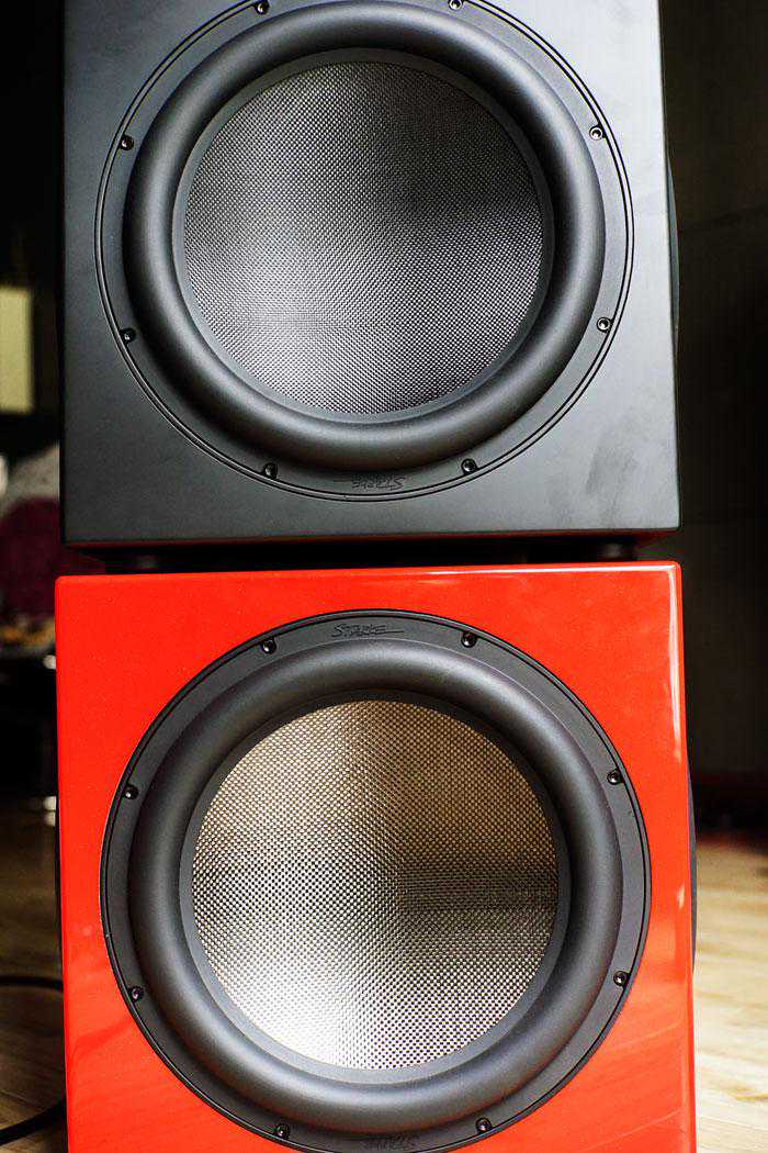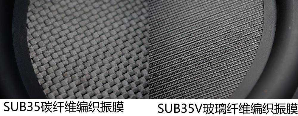 大家注意上图,SUB35和SUB24的碳纤维盆,和SUB35V的玻璃纤维盆,从外观上看,在振膜的光泽度上有明显区别。