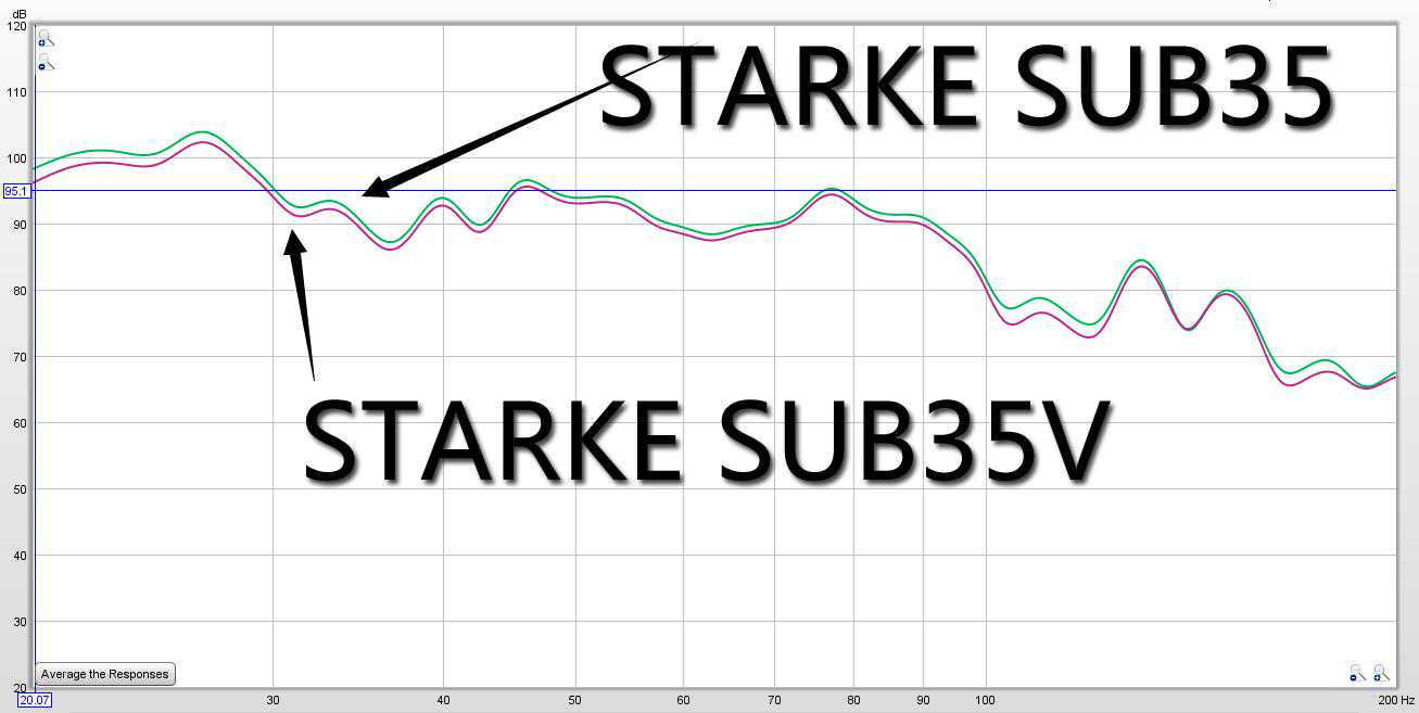 而把SUB35V测得的数据和之前SUB35的频响进行了比对。