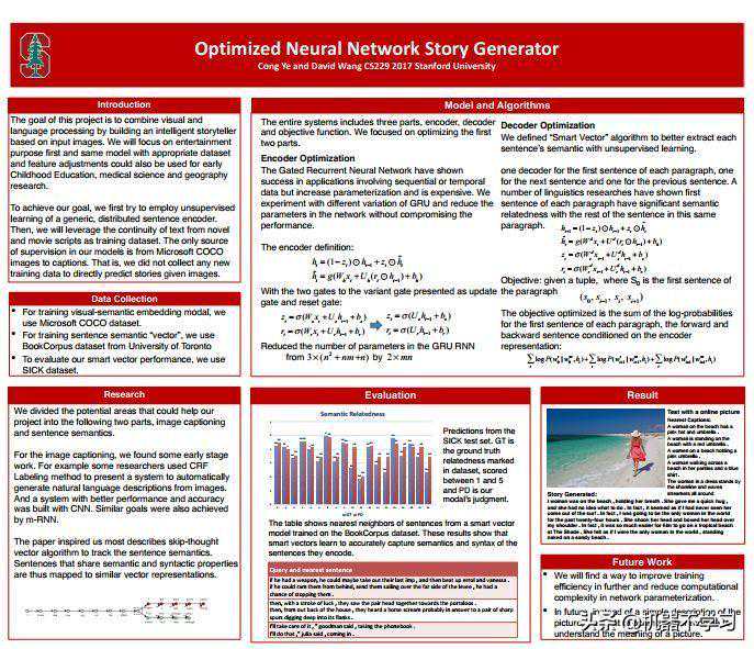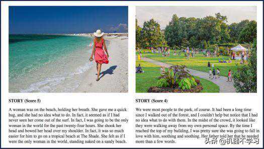 第三个例子是根据图片讲故事。这个引擎的用到了不同的算法。整个训练过程基本上是无监督学习,除了训练讲故事的文本库。它适用场景非常广泛。通过改变不同的文本库,比如从浪漫小说改为科幻小说,那生成的文本就会从浪漫范变成科幻范,灵活性非常强。