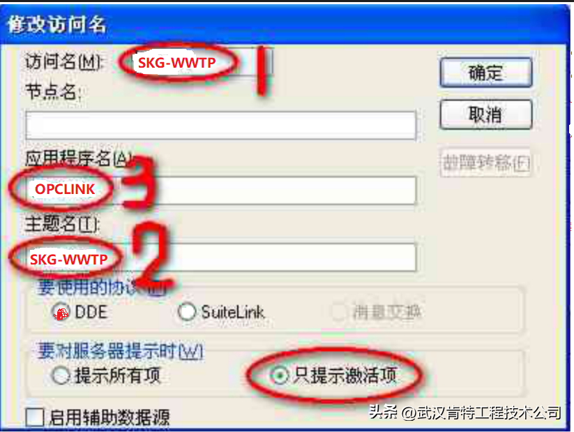 测试数据步骤1,2,3设置完成后,运行上位机软件(Intouch),启动后会自动启动OPClink(Intouch服务功能),OPClink启动后检查的和Items和Error列数据。Items数据——示配置”SKG-WWTP”时数据组的变量数量,Error数据——表示变量有多少个通讯故障。Error列数据正常为0,数量错误多,请检查“解决步骤1”。