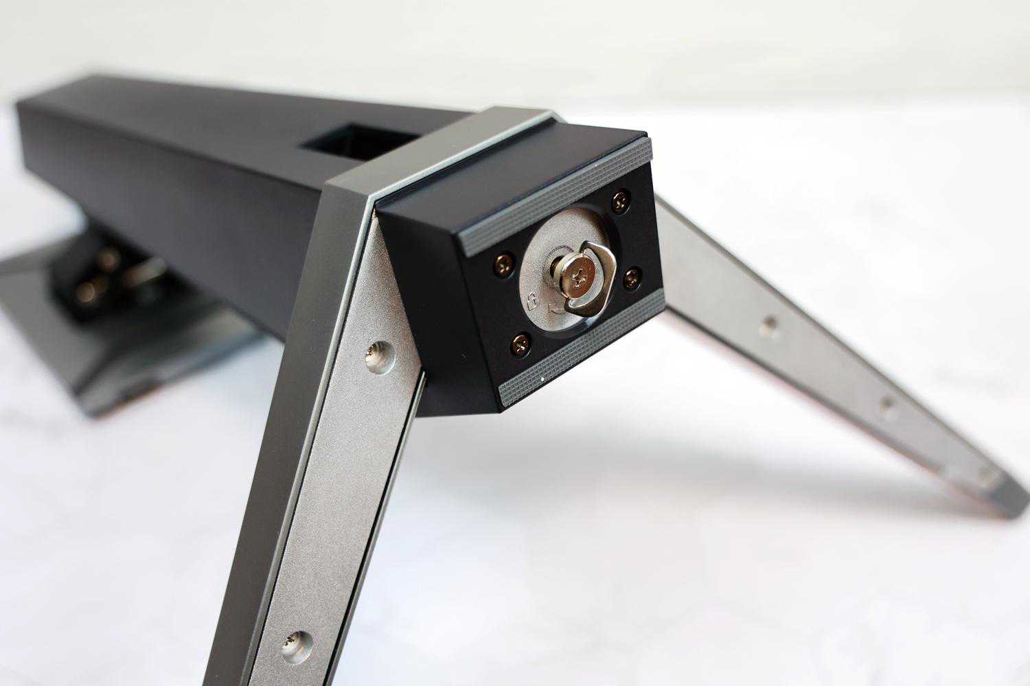 ▲支架和底座的链接采用免工具设计,把防脱落的手拧螺丝给旋紧就行。
