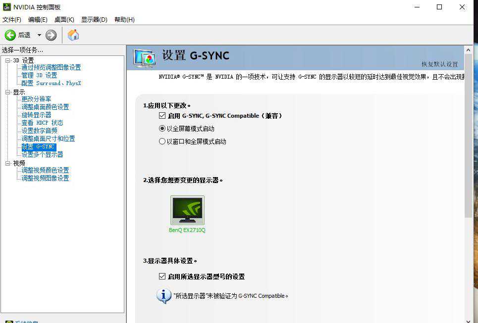 ▲这台显示器可以通过启用G-sync软兼容模式来开启画面防撕裂功能,可以在Nvidia控制中心里设置开启。