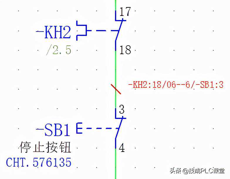 需求:一根线,这头标记为:连接点的名称加线号——另外一头标记为:线号加连接点名称,比如:KH2:18/线号编码——线号编码/SB1:3这表示KH2的下端的第一个接线端接至SB1的上端第一个接线端,如下图所示: