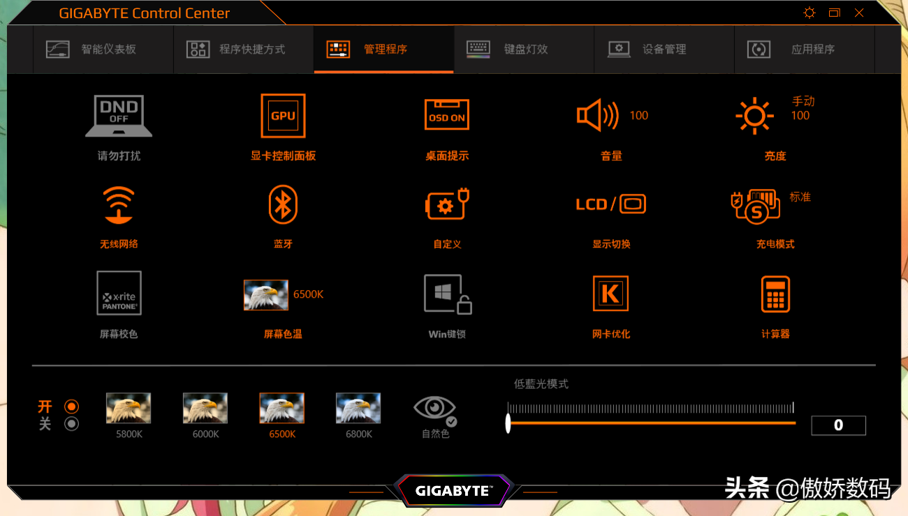 技嘉这台本本比较好的一点是没有预装什么乱七八糟的软件,比较主要的也就一个控制中心软件了