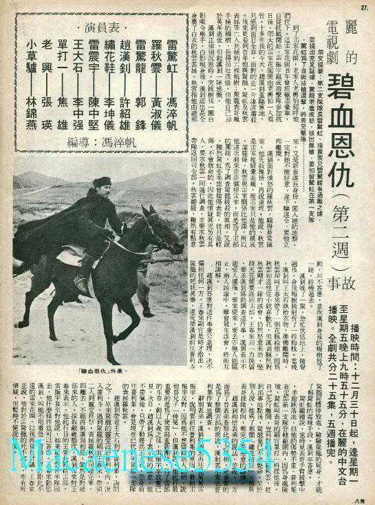 丽的初期曾将不少话剧名作搬上电视,如《雷雨》《北京人》等,1973-1974年间,丽的又将许多言情小说改编成为电视剧,如《睡谷》《落霞孤鹜》等等,但《血字》却另辟蹊径,该剧是一套以解放初期为大时代背景的电视剧。