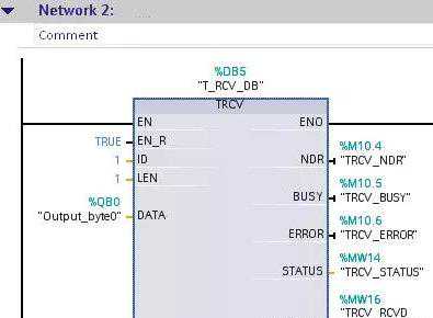 因为与发送使用的是同一连接,所以使用的是不带连接的发送指令“TRCV”,连接“ID”使用的也是“TSEND_C”中的“ConnectionID”号,如图4所示。