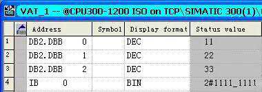 RECV:=P161111_1111”写入IB0,则在S7-1200CPU中QB0中收到的数据也为“2#1111_1111”。