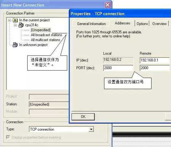 使用TCP协议通信,除了连接参数的定义不同,通信双方的其它组态及编程与前面的ISOonTCP协议通信完全相同。