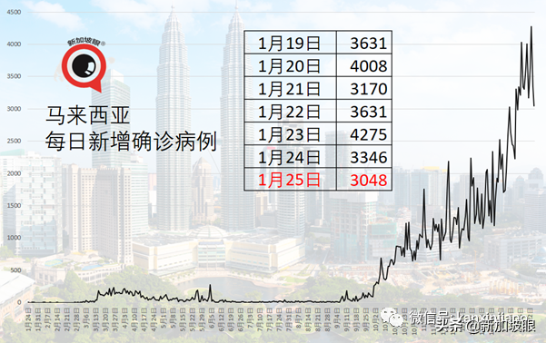 1月25日,马来西亚新增3048起确诊病例,连续12天日增3000起以上,累计18万6849起。