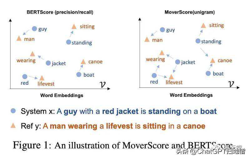 MoverScore能够将一个序列中的语义相关词映射到另一个序列中的对应词。它通过解决一个受限制的优化问题来实现,找到将一个文本转化为另一个文本所需的最小努力。这个想法是测量单词在转换一个序列到另一个序列时需要移动的距离。