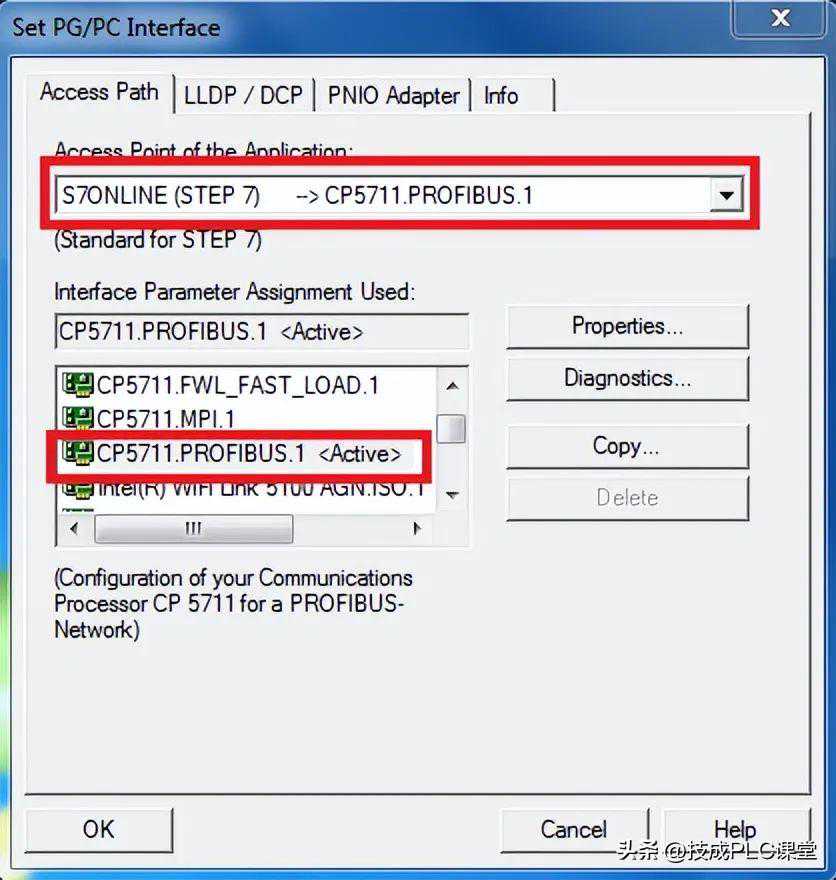 注意:如果CP5711没有被计算机正确识别,在PG/PC接口的类型中将不能选择Profibus,此时请检查CP5711的硬件连接及驱动安装。