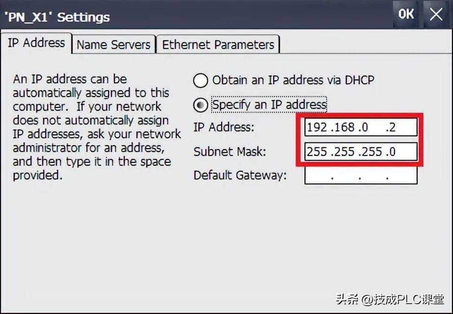 双击PN_X1网络连接图标,打开网卡设置对话框,为网卡分配IP地址及子网掩码。