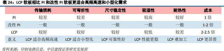 ▲LCP材料表现突出,但MPI拥有接近的性能和一定的价格优势。
