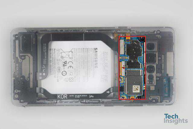▲三星GalaxyS105G版同样采用了复式主板设计.图片来自:TechInsights