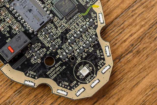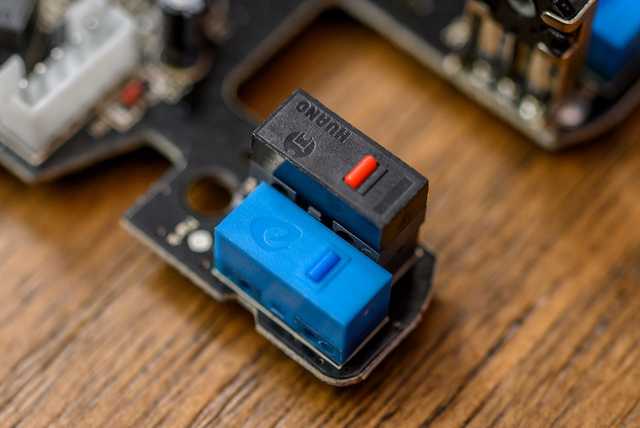 另一部位于鼠标外壳上,与微动直接接触,官方称其为浮动挂台装置。浮动挂台装置+转轴装置就构成了KBS二代按键技术,并以此用于消除按键空行程隐患。